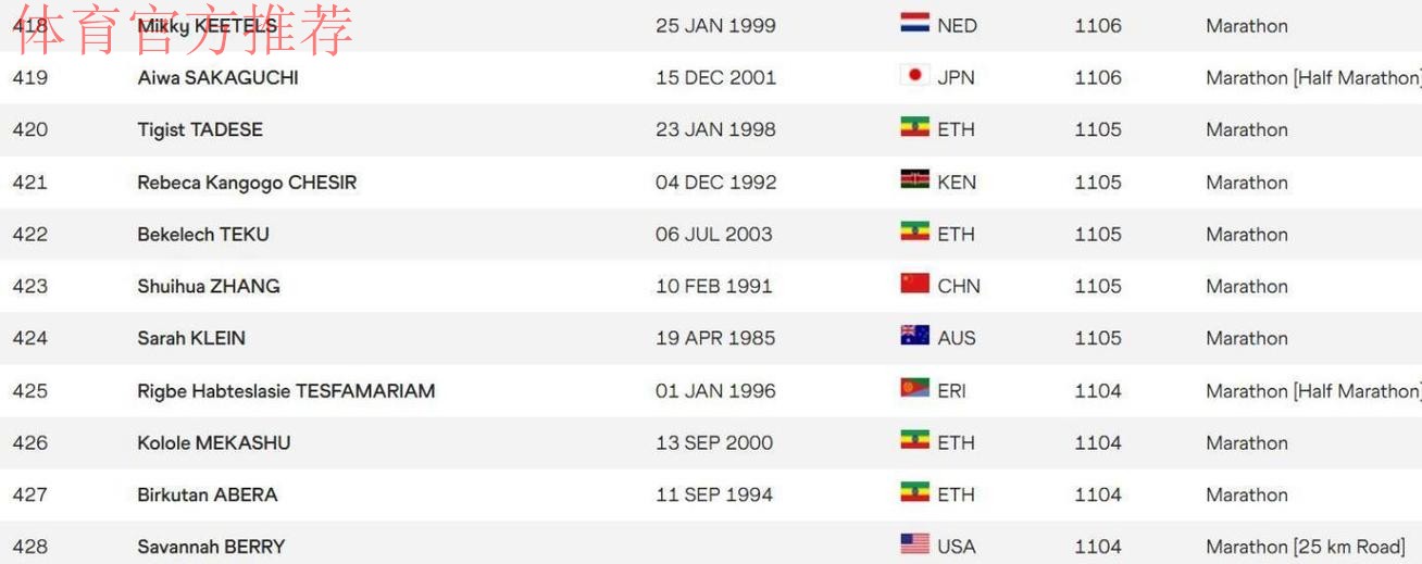 世界田联拒绝承认张水华最好成绩,目前暂排名世界第423中国第22